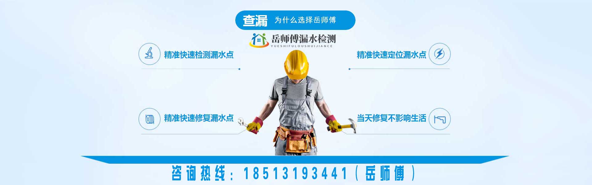 北京岳師傅漏水檢測維修(北京京誠快修漏水檢測有限公司)專業從事漏水檢測維修服務,包括衛(wèi)生間漏水檢測,廚房漏水檢測,房屋漏水檢測,地暖漏水檢測,管道漏水檢測,家庭暗管滲水查漏,室內外漏水檢測,暗管漏水檢測等,針對各種漏水檢測維修情況提供最佳方案及服務。引進進口設備儀器,配備相關儀,巡管儀,熱像儀,測漏儀,氣體示蹤儀專業設備查找室外暗埋熱力管網漏水,自來水管網漏水消防管網漏水,探測深度可達地下5米深的500型管道漏水點精準定位。室內漏水精準定位漏水點、零誤差維修墻角起堿、掉皮。免砸磚維修防水,水管打壓。以技術領先為基、誠信服務為準、質量保證為則,建立一批技過硬的技術人員經驗豐富服務領先的工程團隊,...